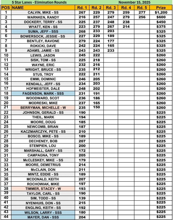 5 Star Lanes – November 15, 2025